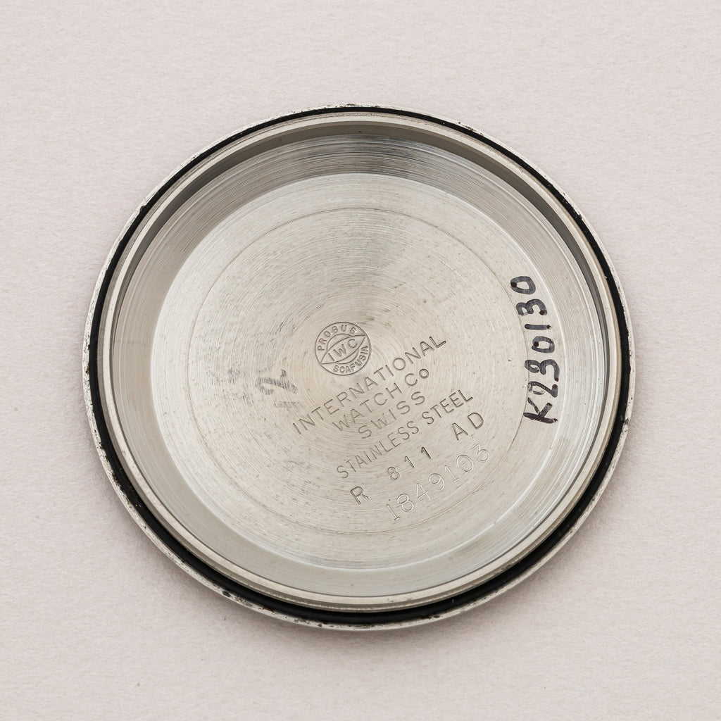 インターナショナルウォッチカンパニーの1967年製「ヨットクラブ」ゲイフレアー社製の純正ブレス付きです。シンプルながら防水構造のスポーツウォッチで、しっかりとした厚みがあり存在感があります。ケースは小キズが見られますが大きなダメージはありません。ムーブメントはペラトン式巻き上げのCal.8541でとても綺麗な状態です。分解掃除済みで手巻きや針回しの操作はスムーズです。