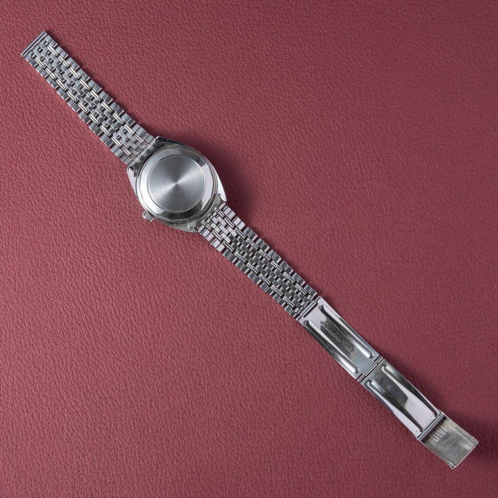 • ヴィンテージ時計の特性上、風防・パッキン・リューズ・バネ棒などの消耗部品は後年メンテナンス過程で交換されている場合がございます。オリジナル性を重視しておりますが、必要に応じて適切な部品にて調整されていますので、よりコレクション性重視のお求めのお客様は事前にご確認ください。