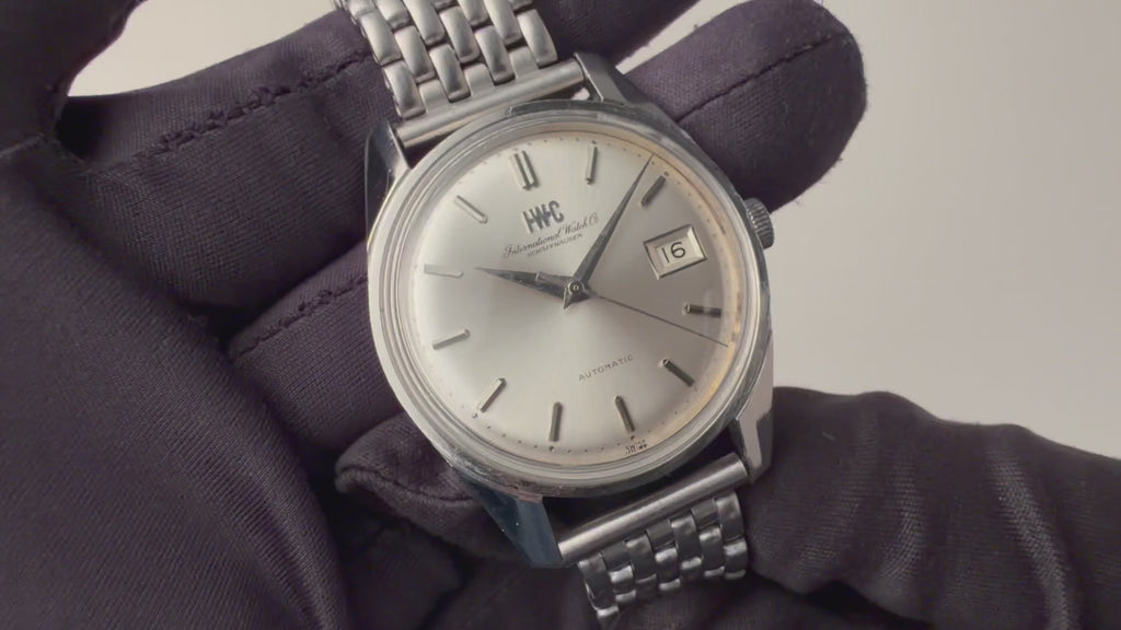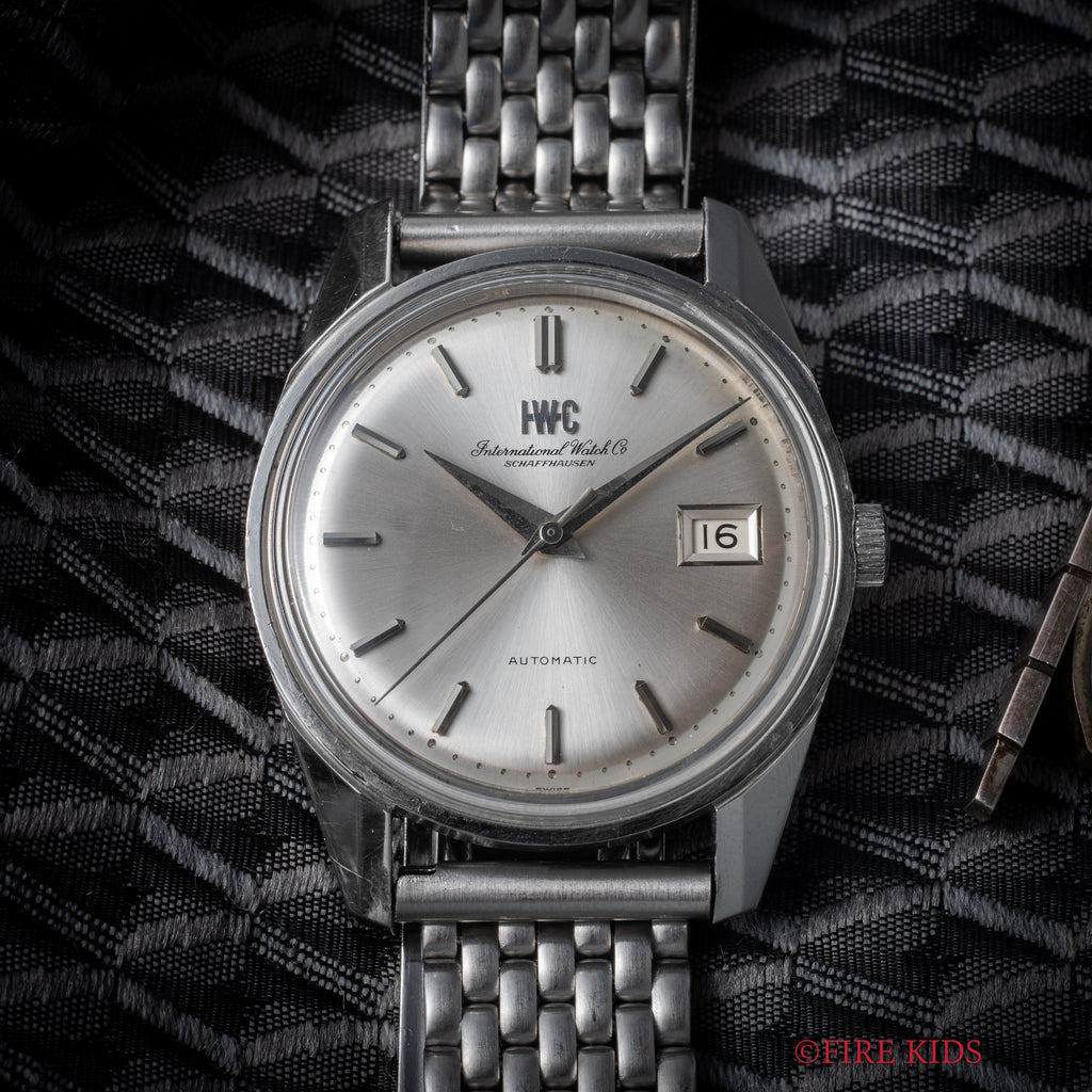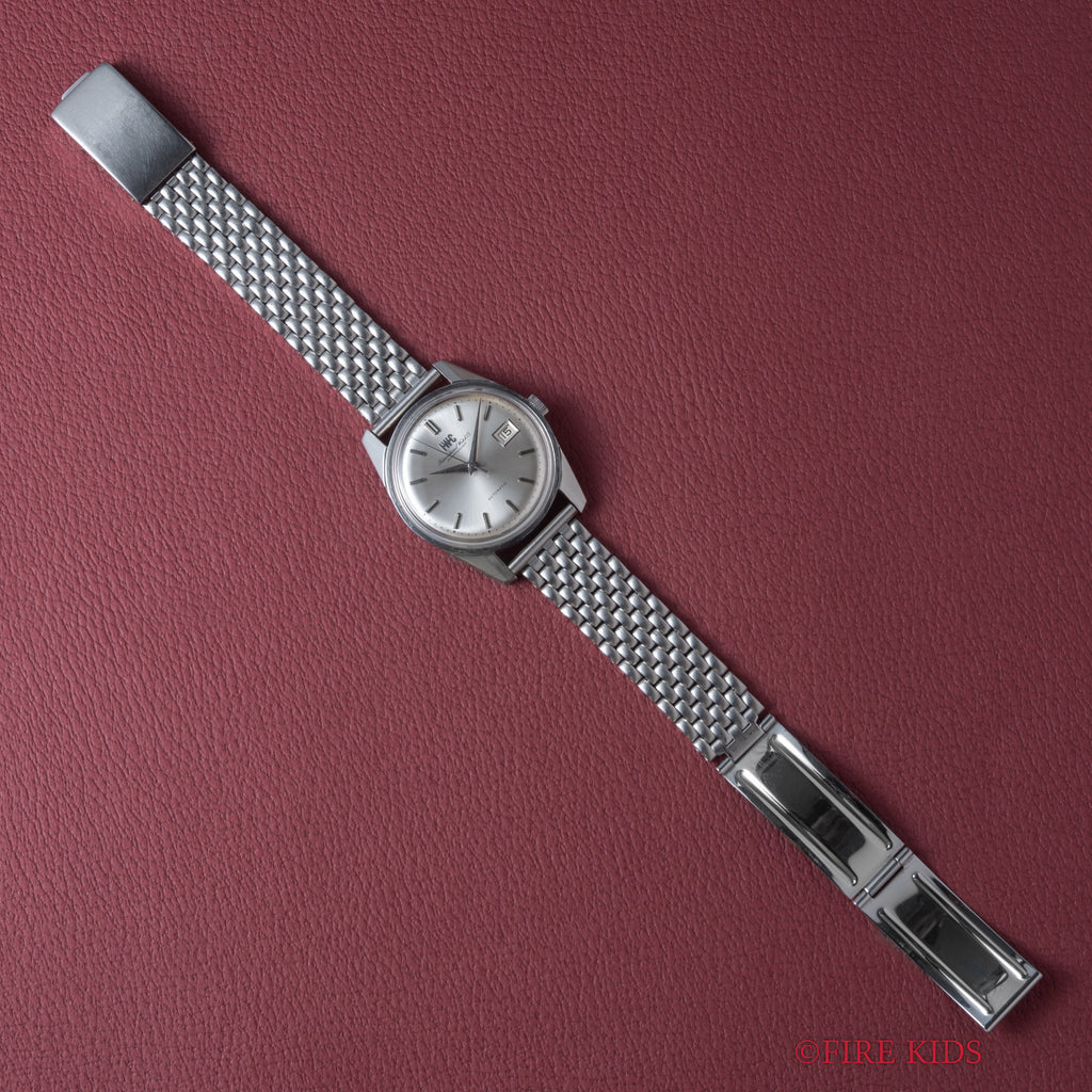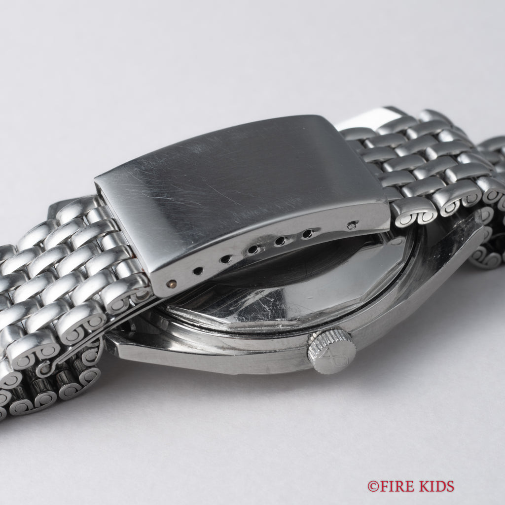 インターナショナルウオッチカンパニーの1970年製自動巻きラウンドケースです。ペラトン式自動巻きの完成形Cal.8541Bを搭載したモデルでオールドインターらしいシンプルな質実剛健なモデルです。シンプルだからこそ造りの良さが感じられます。文字盤は表面に若干荒れが確認できますが、ケースは小傷がありますが大きなダメージはありません。ブレスは社外のジュビリーブレスが装着されています。こちらは分解掃除済みになります。