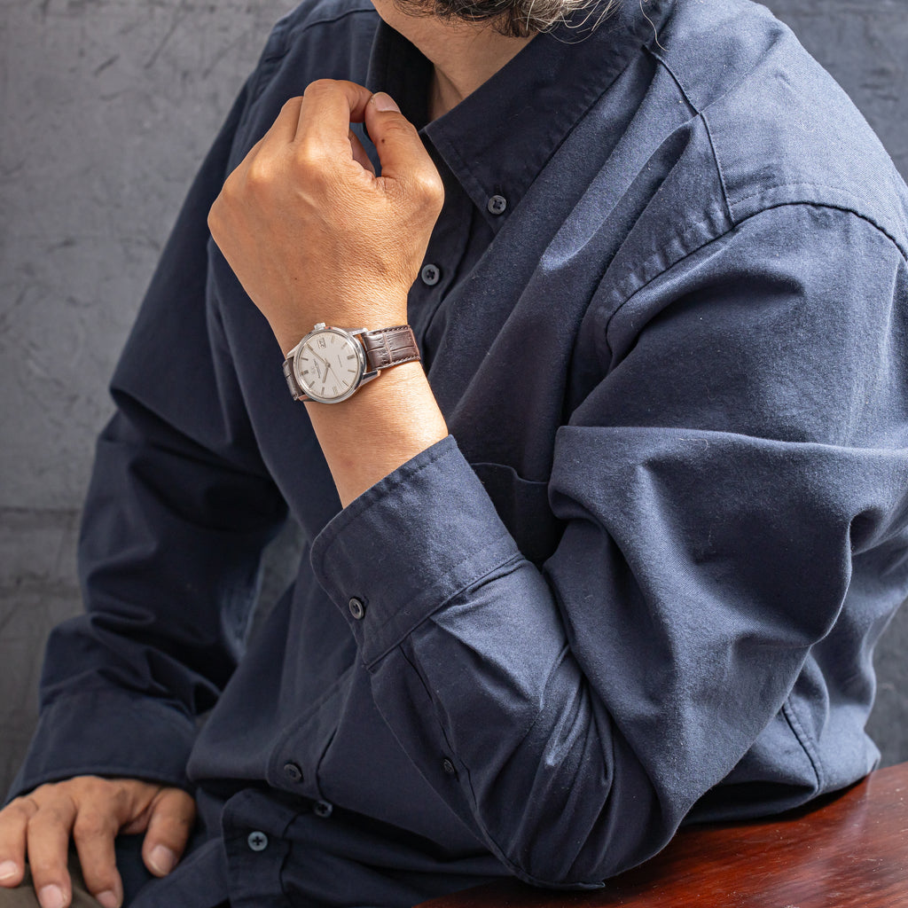 • ヴィンテージ時計の特性上、風防・パッキン・リューズ・バネ棒などの消耗部品は後年メンテナンス過程で交換されている場合がございます。オリジナル性を重視しておりますが、必要に応じて適切な部品にて調整されていますので、よりコレクション性重視のお求めのお客様は事前にご確認ください。