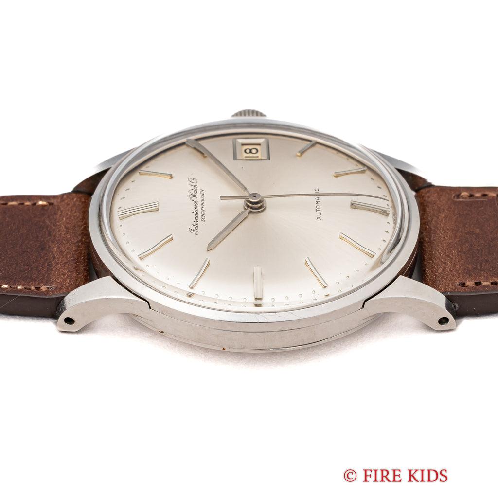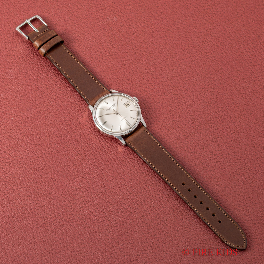 1966年製のIWC ラウンドケース Ref.809A ペラトン式自動巻き Cal.8541です。ペラトン式自動巻きの完成形Cal.8541を搭載したモデルでオールドインターらしいシンプルな質実剛健なモデルです。シンプルだからこそ造りの良さが感じられます。文字盤はダメージを感じない良好な状態で、ケースは小傷がありますが大きなダメージはありません。手巻きや針回しの操作はスムースです。ベルトはファイアーキッズオリジナルのブッテーロレザー革ベルトが取り付けてあります。