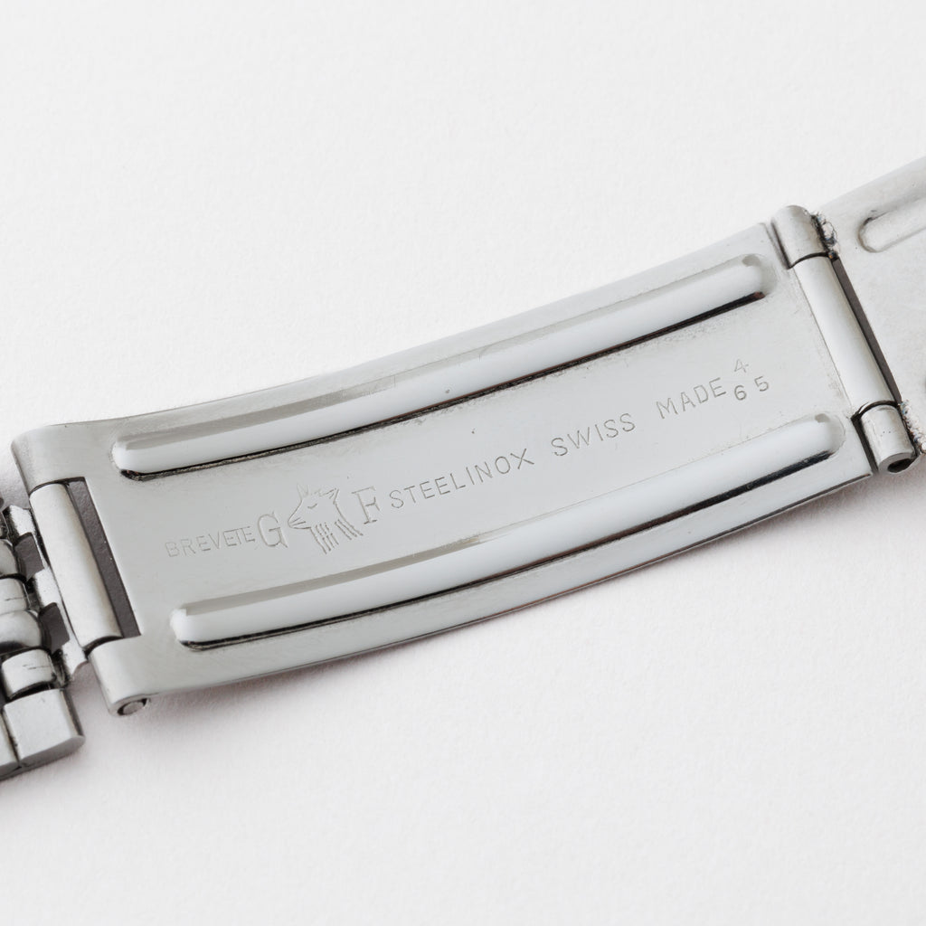 • ヴィンテージ時計の特性上、風防・パッキン・リューズ・バネ棒などの消耗部品は後年メンテナンス過程で交換されている場合がございます。オリジナル性を重視しておりますが、必要に応じて適切な部品にて調整されていますので、よりコレクション性重視のお求めのお客様は事前にご確認ください。