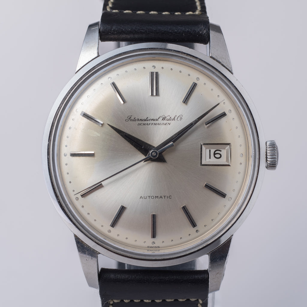 インターナショナルウオッチカンパニーの1966年製自動巻きラウンドケースです。ペラトン式自動巻きの完成形Cal.8541を搭載したモデルでオールドインターらしいシンプルな質実剛健なモデルです。シンプルだからこそ造りの良さが感じられます。文字盤は表面に若干荒れが確認できますが、ケースは小傷がありますが大きなダメージはありません。ベルトはヴィンテージモデルに相性抜群な「Accurate Form(アキュレイトフォルム)」のレザーベルトを装着しています。こちらはオーバーホール済みです。