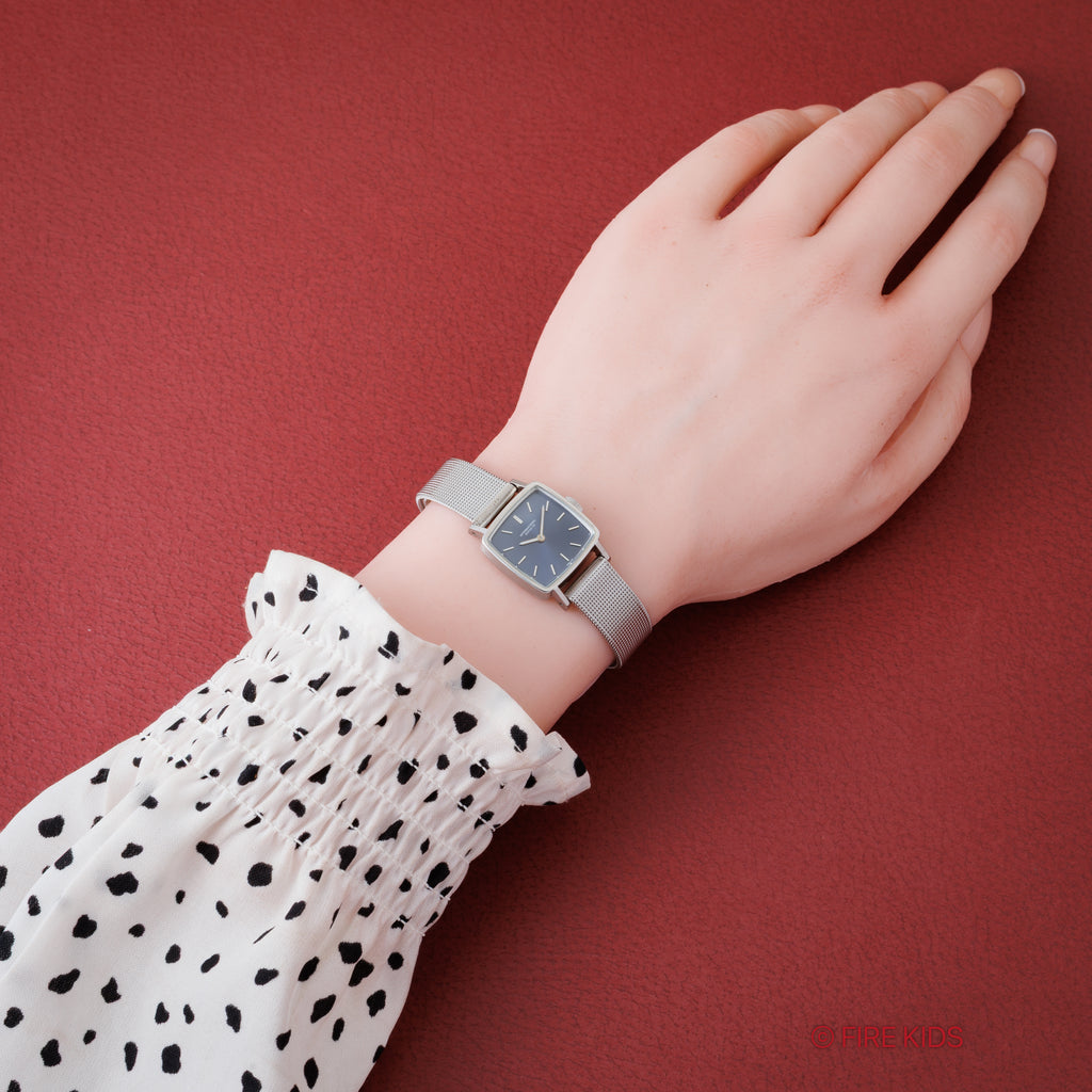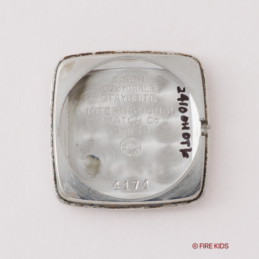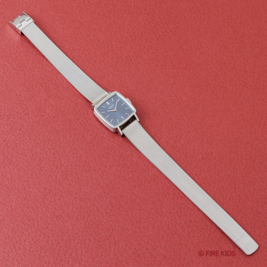 1972年製、IWC(インターナショナル・ウォッチ・カンパニー)のレディースモデル Ref.4174 のご紹介です。スクエアケースに、光沢感あるネイビーブルーダイヤルを組み合わせた、エレガントで洗練された一本です。ムーブメントにはIWC自社製の高精度手巻きキャリバーCal.412を搭載し、手巻きや針回しはスムーズです。小型でありながら緻密な設計がなされ、耐久性と整備性に優れたムーブメントとして、当時の女性用モデルに多く採用されていました。ノンデイト仕様でダイヤルデザインをよりシンメトリックに保っており、シンプルながら奥深い表情を魅せてくれます。ベルトはIWC純正ブレスが付いています。こちらは分解掃除済みです。