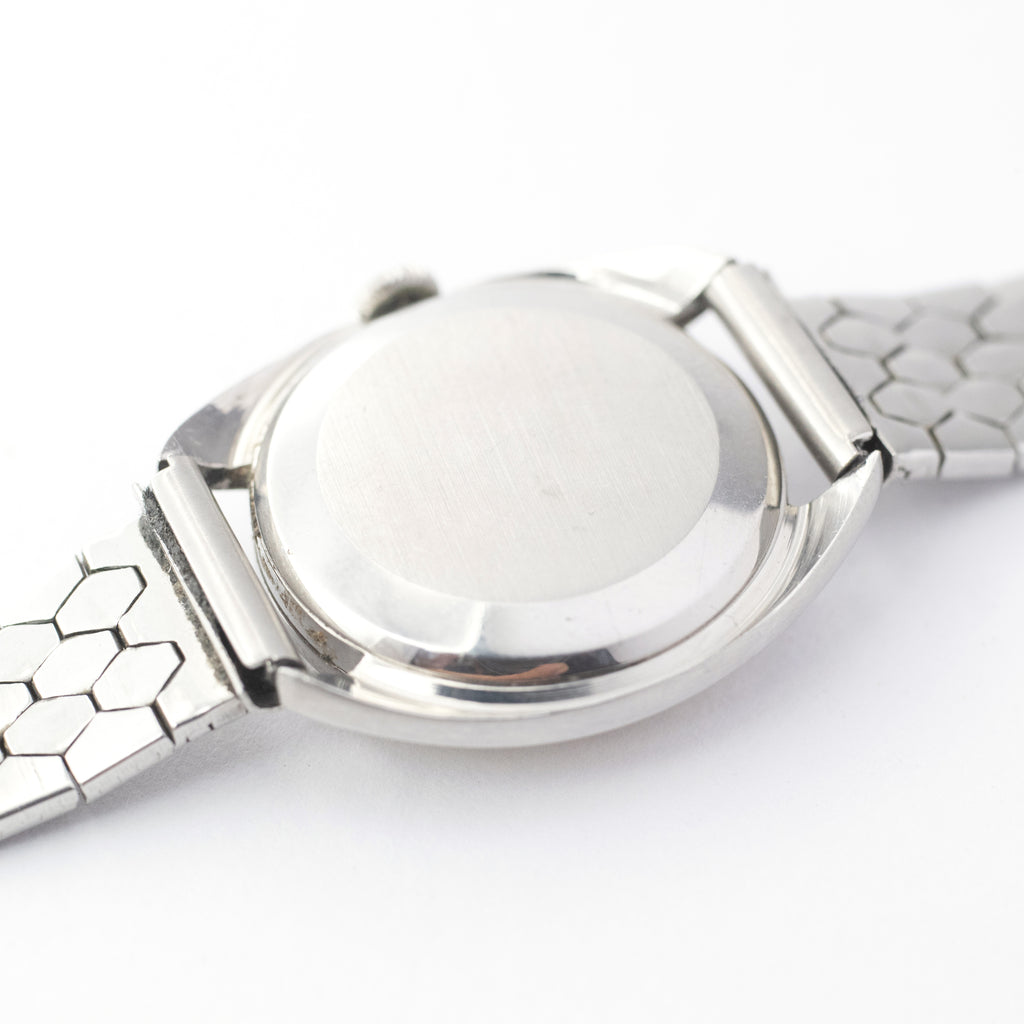 • ヴィンテージ時計の特性上、風防・パッキン・リューズ・バネ棒などの消耗部品は後年メンテナンス過程で交換されている場合がございます。オリジナル性を重視しておりますが、必要に応じて適切な部品にて調整されていますので、よりコレクション性重視のお求めのお客様は事前にご確認ください。