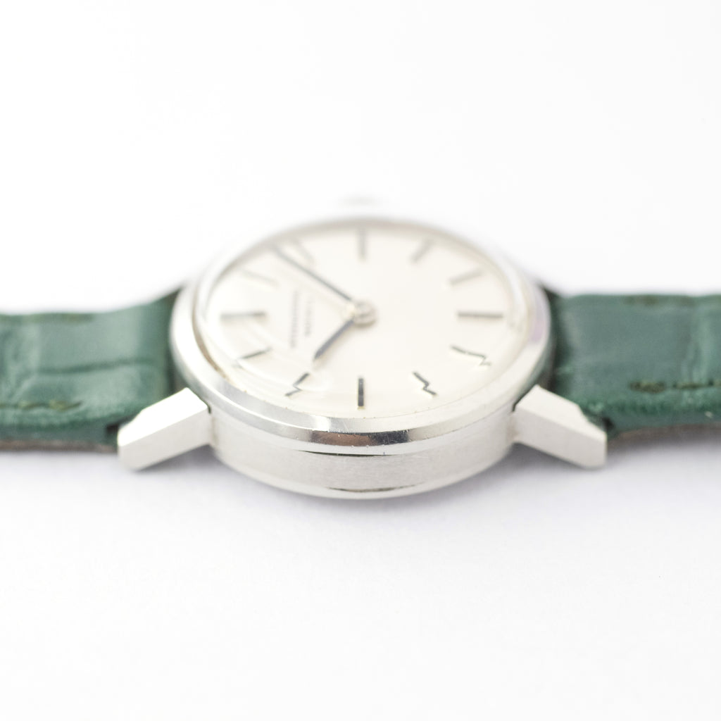 1969年製のIWCレディース手巻きモデルです。手巻きで使いやすく落ち着いた雰囲気のこちらのモデルは主張しないので数々の場面や服装にも合わせやすいモデルかと思います。文字盤はとても50年以上前の時計と思えないほどシミや汚れの無いキレイな状態を保っています。ケースは多少小傷や使用感はございますが年代を考慮するとキレイな状態です。でムーブメントは手巻きのCal.41を搭載。ベルトは社外の新品革ベルトが取り付けてあります。