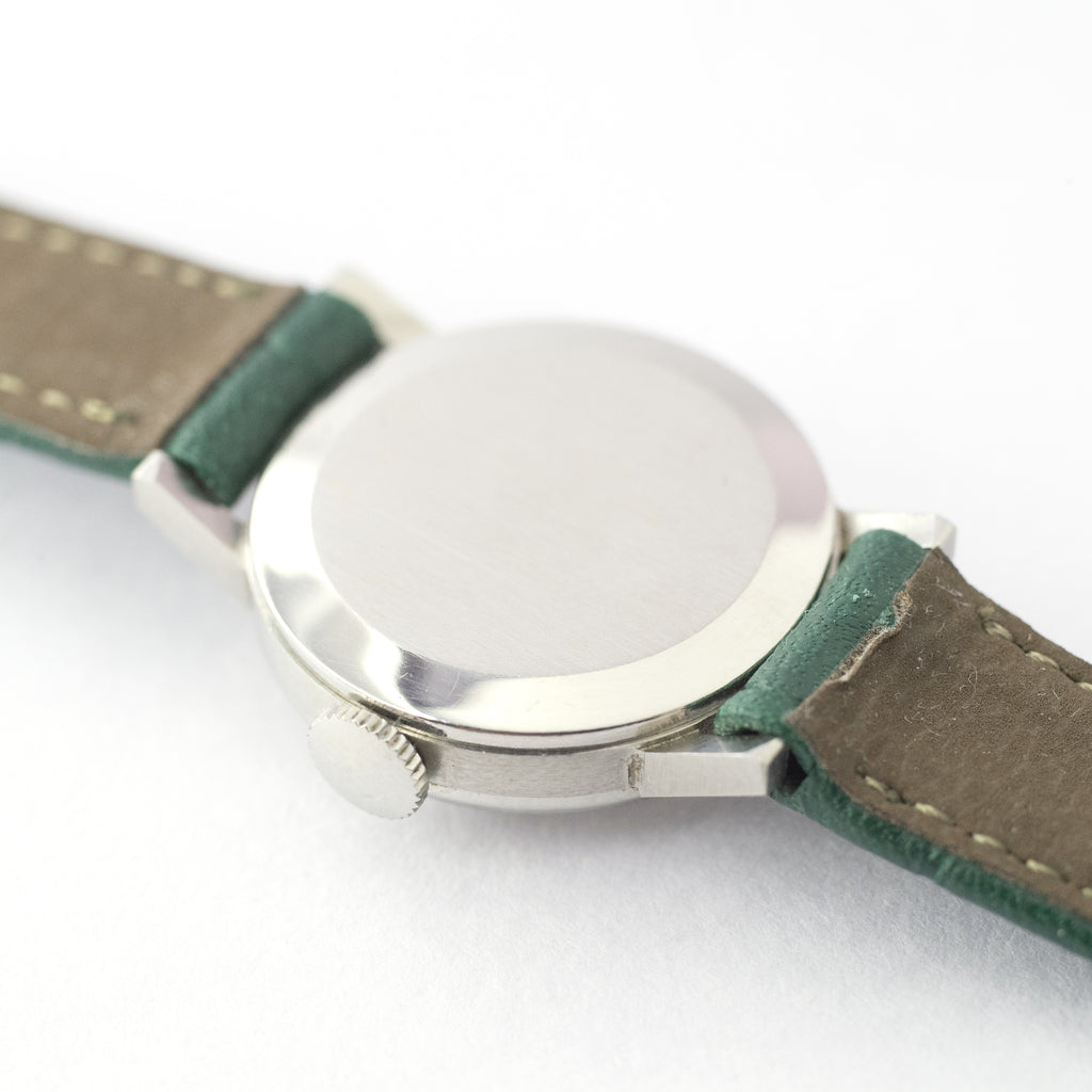 • ヴィンテージ時計の特性上、風防・パッキン・リューズ・バネ棒などの消耗部品は後年メンテナンス過程で交換されている場合がございます。オリジナル性を重視しておりますが、必要に応じて適切な部品にて調整されていますので、よりコレクション性重視のお求めのお客様は事前にご確認ください。