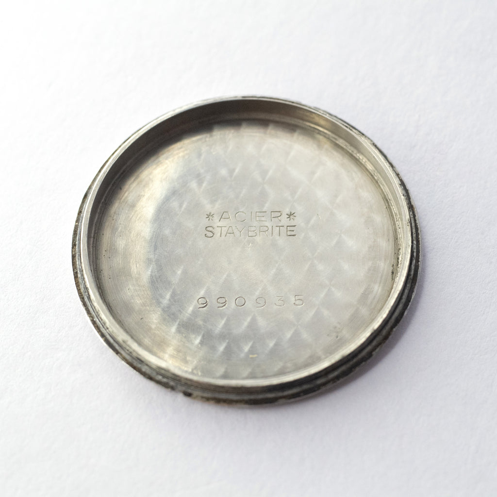 • ヴィンテージ時計の特性上、風防・パッキン・リューズ・バネ棒などの消耗部品は後年メンテナンス過程で交換されている場合がございます。オリジナル性を重視しておりますが、必要に応じて適切な部品にて調整されていますので、よりコレクション性重視のお求めのお客様は事前にご確認ください。