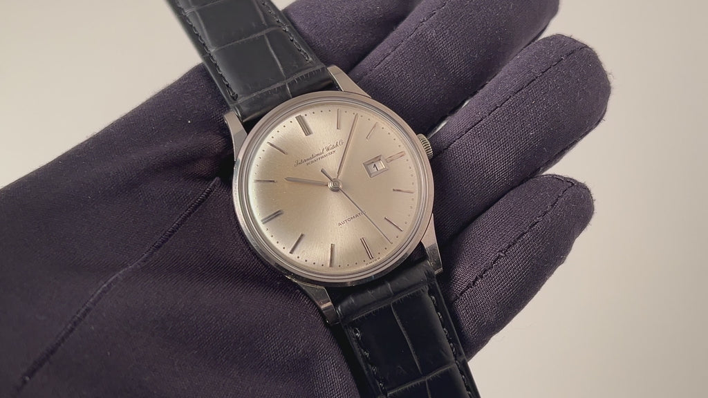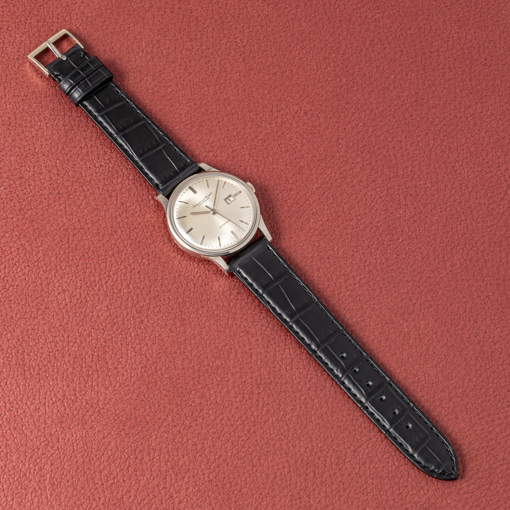 1963年製のIWC Ref.309A 18KWG Cal.8531搭載 ラウンドモデルが入荷しました。人気の筆記体ロゴのダイヤルは若干経年はあるものの大きなダメージはありません。18KWGケースも多少小傷はありますが、オリジナルのフォルムを残しています。リューズもしっかりお魚リューズが残っています。機械はデイトが内側に寄っていることから寄り目と呼ばれるCal.8531を搭載し、手巻きや針回しはスムーズです。ベルトはファイアーキッズオリジナルのクロコダイルにWG製の尾錠を合わせています。こちらは分解掃除済みです。