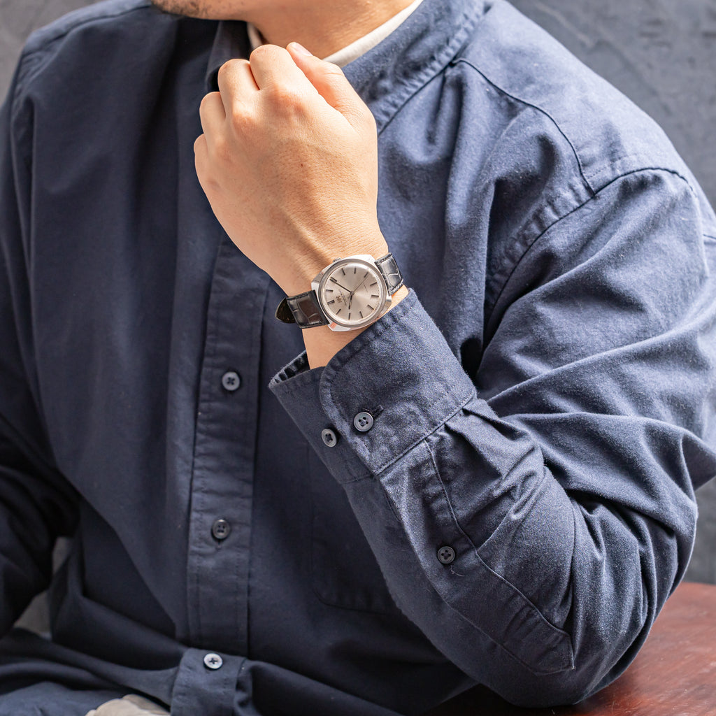 • ヴィンテージ時計の特性上、風防・パッキン・リューズ・バネ棒などの消耗部品は後年メンテナンス過程で交換されている場合がございます。オリジナル性を重視しておりますが、必要に応じて適切な部品にて調整されていますので、よりコレクション性重視のお求めのお客様は事前にご確認ください。
