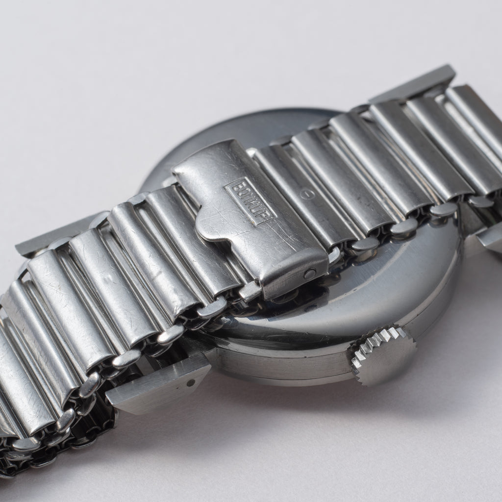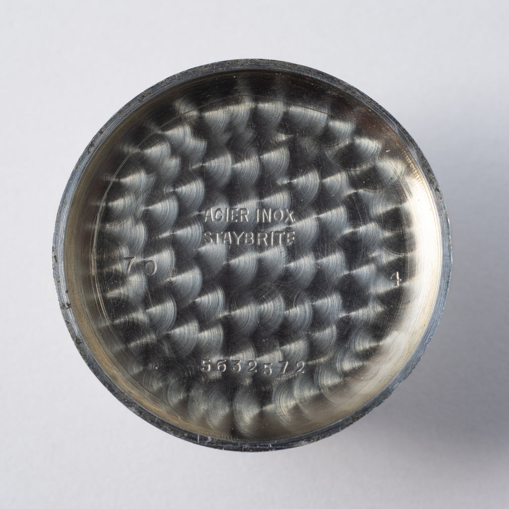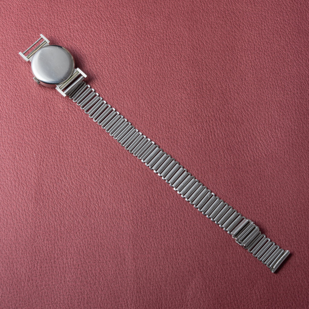 • ヴィンテージ時計の特性上、風防・パッキン・リューズ・バネ棒などの消耗部品は後年メンテナンス過程で交換されている場合がございます。オリジナル性を重視しておりますが、必要に応じて適切な部品にて調整されていますので、よりコレクション性重視のお求めのお客様は事前にご確認ください。