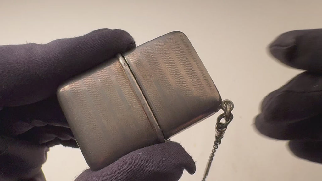1940年代に製造されたモバードのトラベルウォッチ エルメトです。ザラザラとした質感のシルバー文字盤は夜光塗料のアラビアインデックスとコブラハンドのヴィンテージらしい組み合わせです。スターリングシルバーのケースは模様が刻んであり高級感があります。ケースの開閉によりゼンマイの巻上げが出来るモバード独自機構を備えたモデルです。針回しと巻き上げはスムーズです。貴重な当時の箱が付属します。こちらはOH済みです。