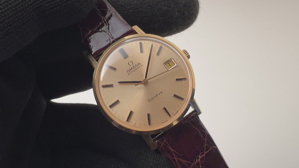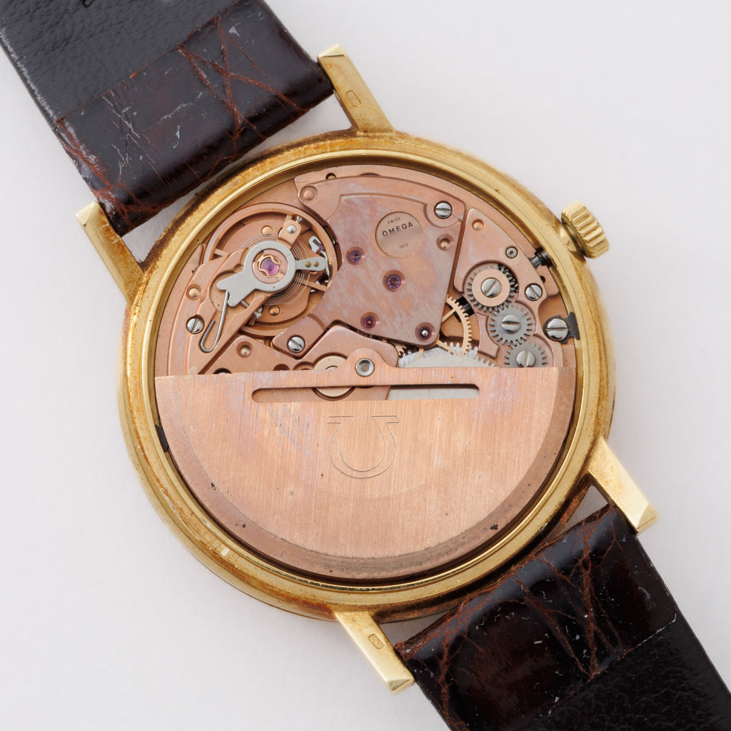 オメガ 18金無垢ジュネーブ 1973年製 ハイビート自動巻きCal.1012 純正GF尾錠付き