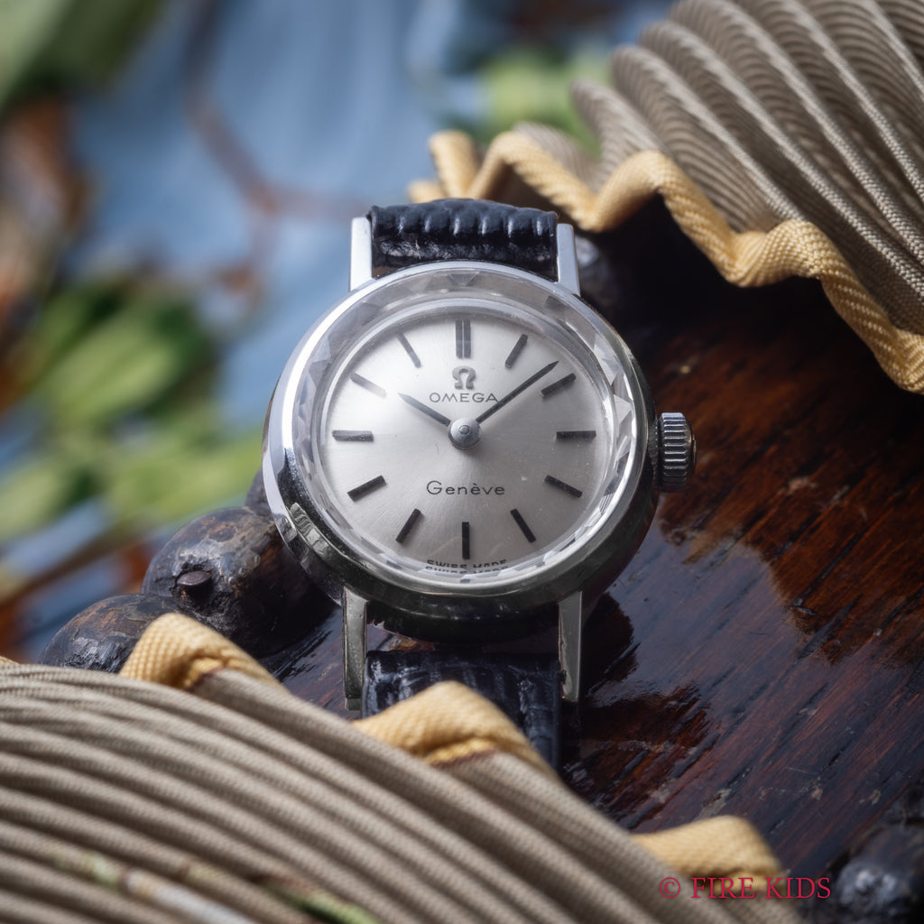 1968年製のオメガ ジュネーブ レディースウォッチ手巻きモデルです。レディースウォッチ特有の小振りのラウンドケースに、上品な輝きをを見せるカットガラス風防が魅力です。ムーブメントは手巻きのCal.620を搭載。ケースは小傷はございますが大きなダメージはございません。手巻きや針回しの操作はスムースです。ベルトは社外の革ベルトが装着されています。
